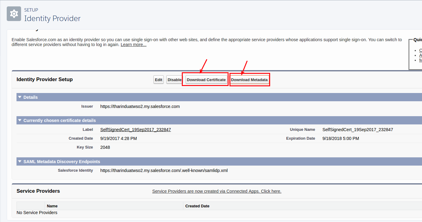 5. Press Download Certificate and Download Metadata to get files that are needed for setting up SAML.