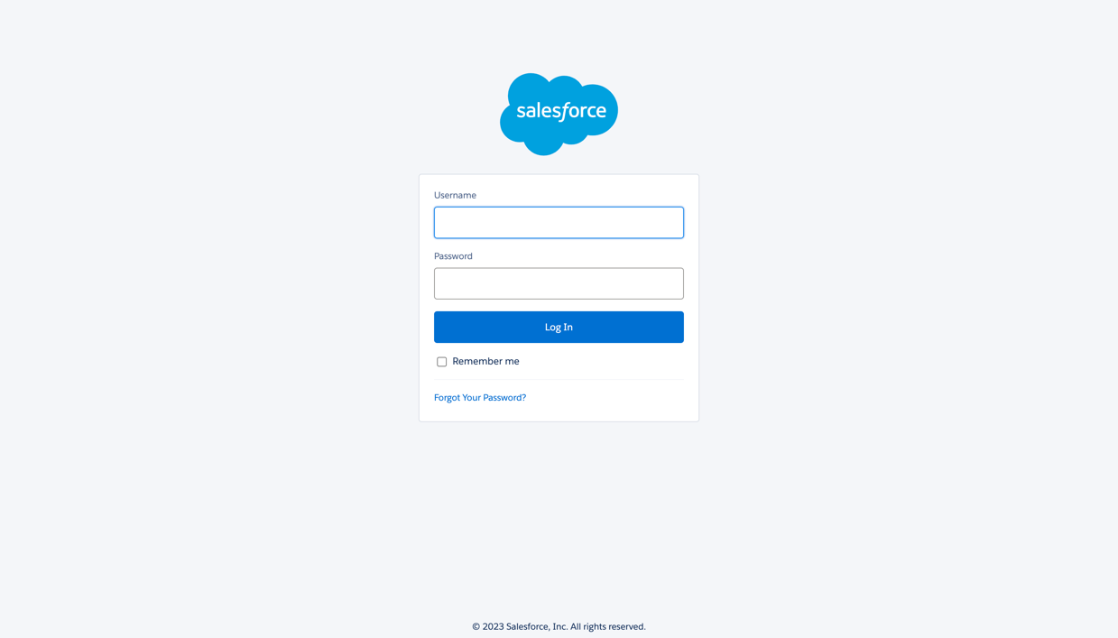4. Insert your Salesforce credentials. Click Log In. Wait for an authentication message that indicates your credentials were approved.