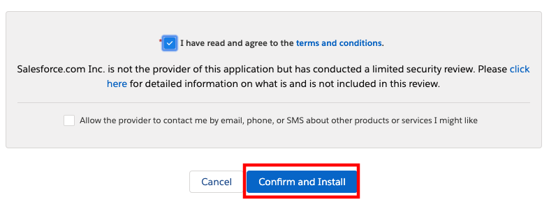 7. On the Confirm installation details screen, fill out the Tell us about yourself form, check the box to agree with the terms and conditions, and optionally select the box to allow the provider to contact you. Then select Confirm and Install.