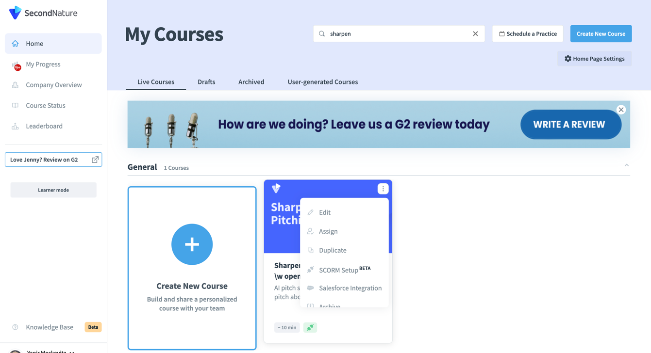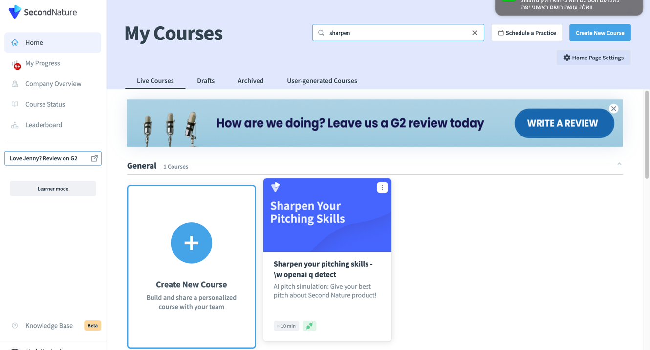 7. Confirm that the course is now available in the Second Nature window of your Salesforce.