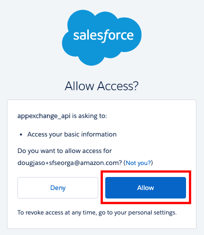 5. If you are presented with the Log In to AppExchange screen, select Open Login Screen. You should then be presented with an Allow Access Screen. Choose Allow