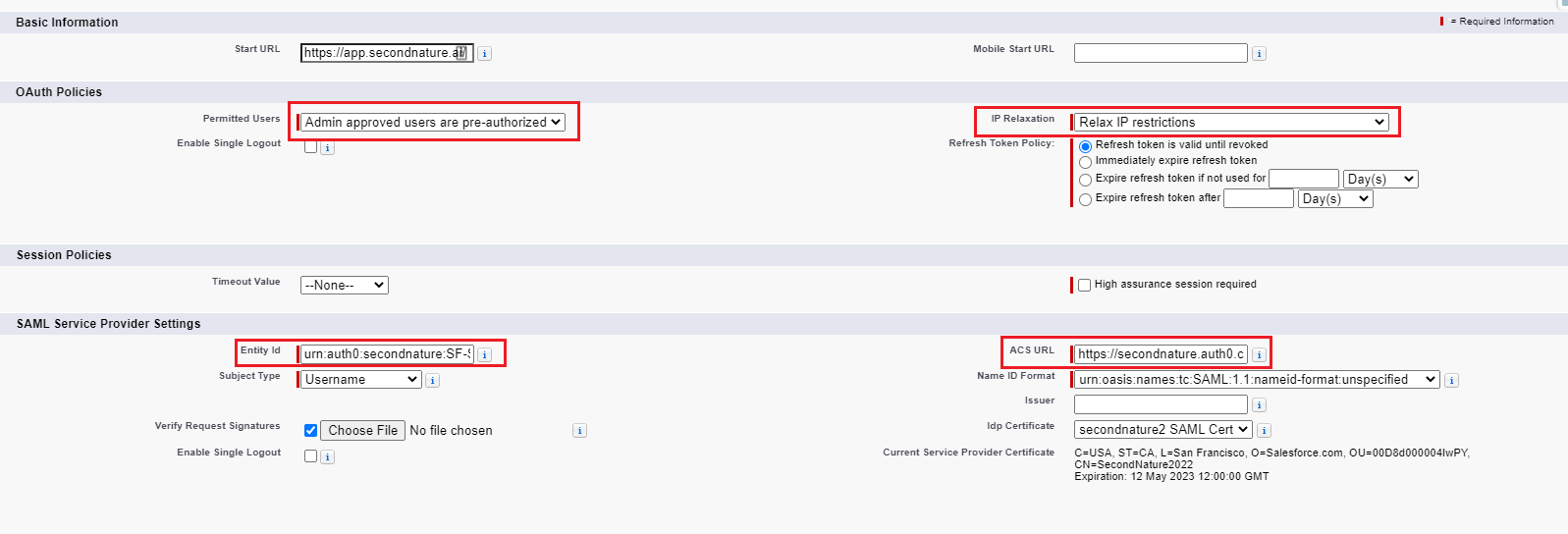 a. Example: urn:auth0:secondnature:XXXXXXX-SAML