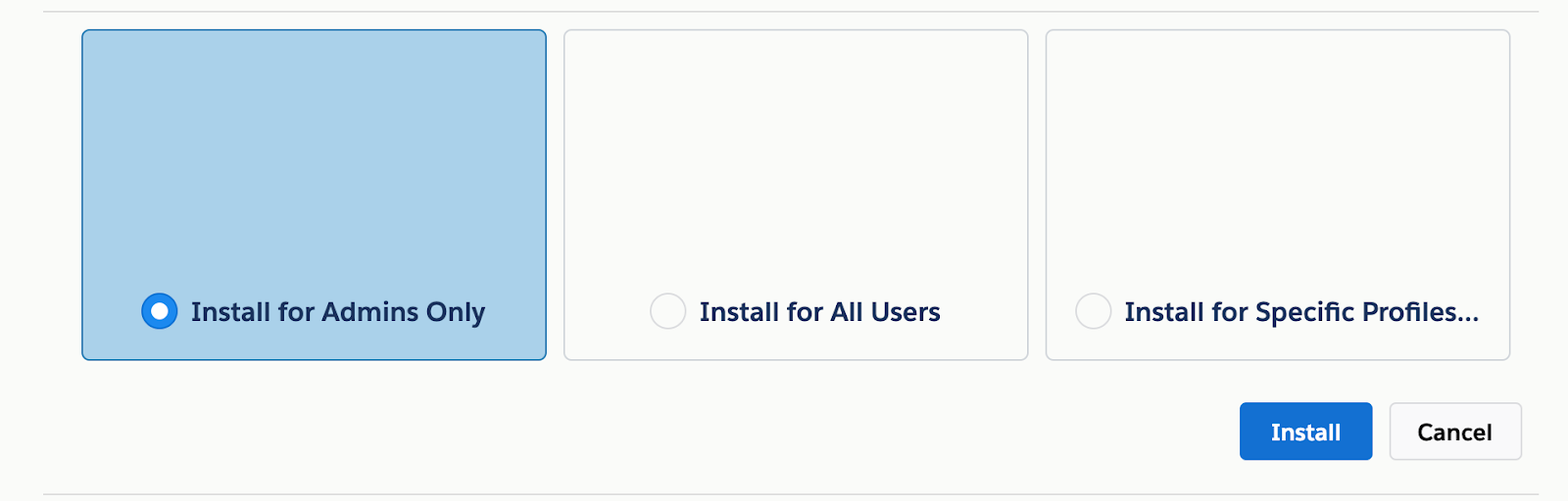 8. Select the Install for Admins Only option, then choose Install.