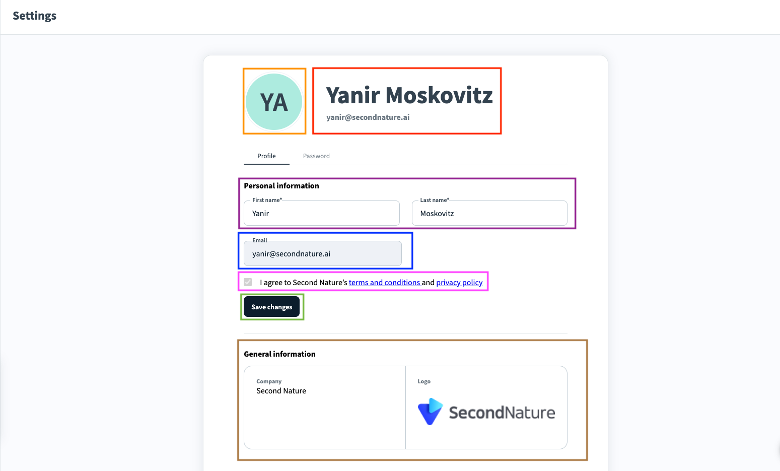 The User Profile page in Second Nature allows users to manage their personal information and update their passwords with ease. This ensures that users can keep their details up to date while maintaining the security of their accounts through password changes.
