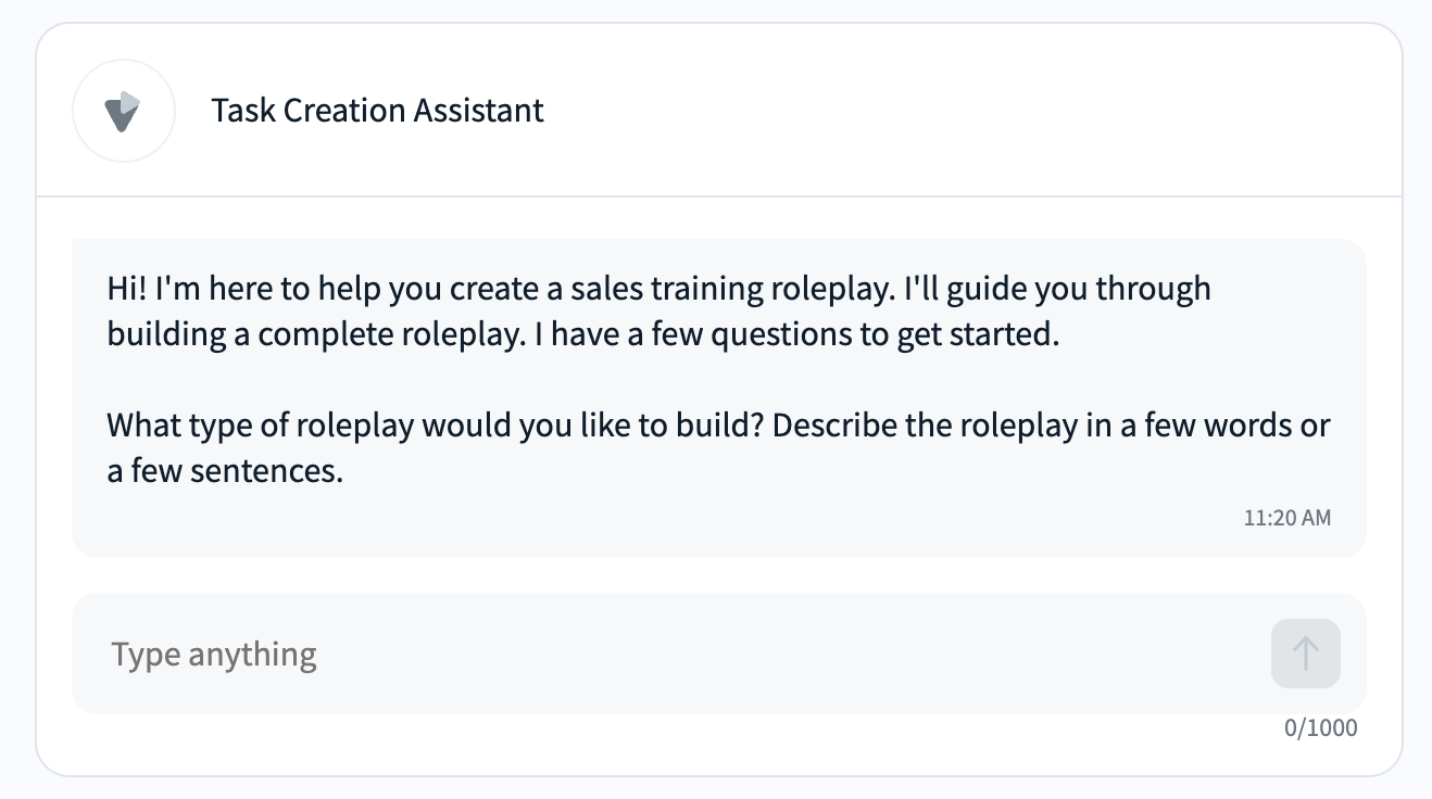 Once the resources are uploaded, the AI Assistant will use your company’s training data to generate an initial role-play scenario.
