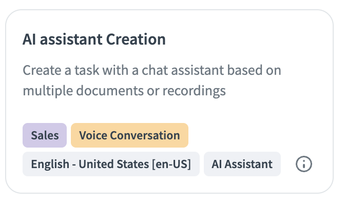 On the Template Selections page, search for the template named “AI Assistant Creation”.