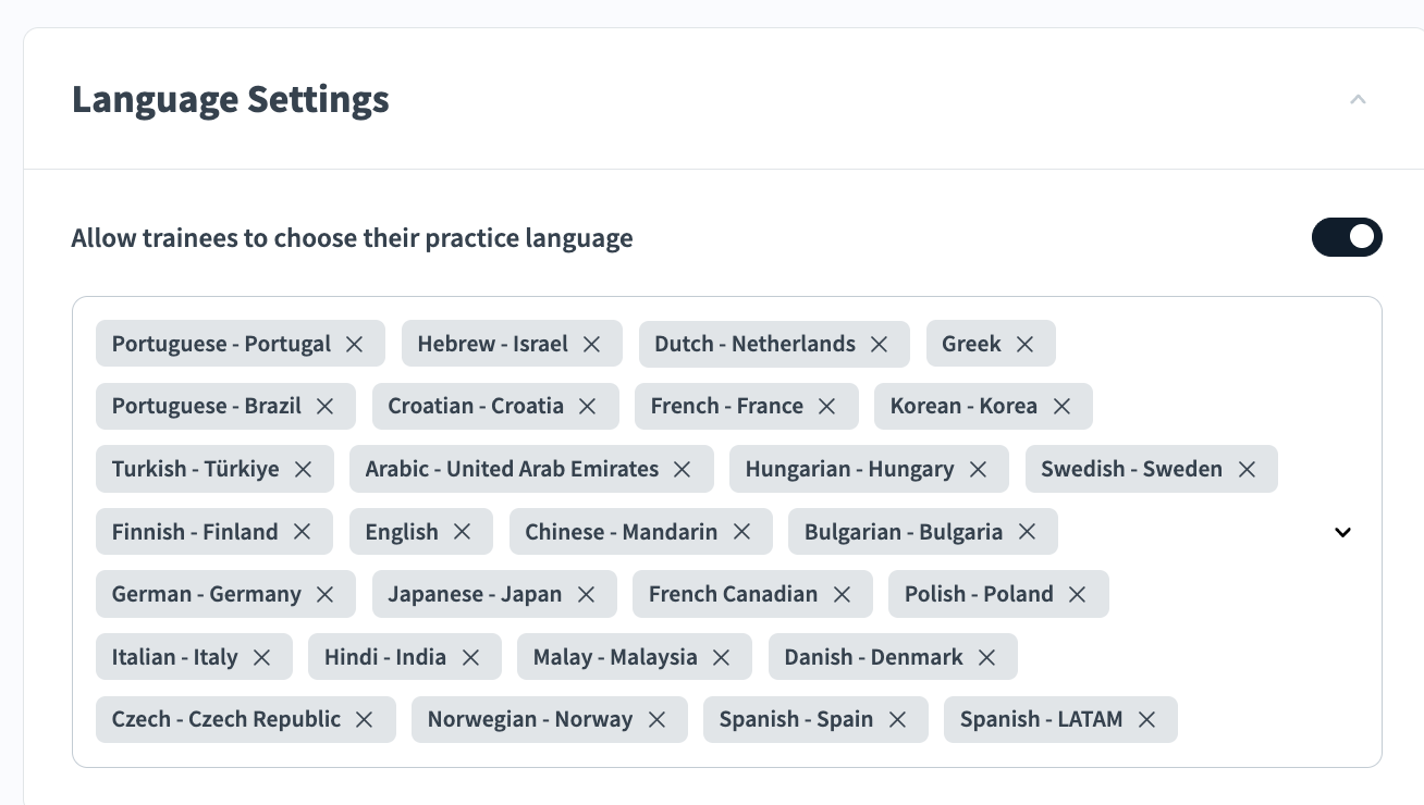 Go to Language Settings and select the available languages for trainees.