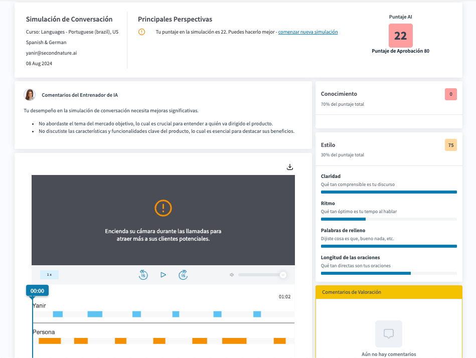 Second Nature now empowers companies worldwide to train their teams in their preferred language — making role-play practice truly global and inclusive.