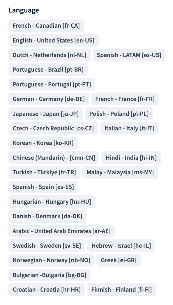 Supported Languages