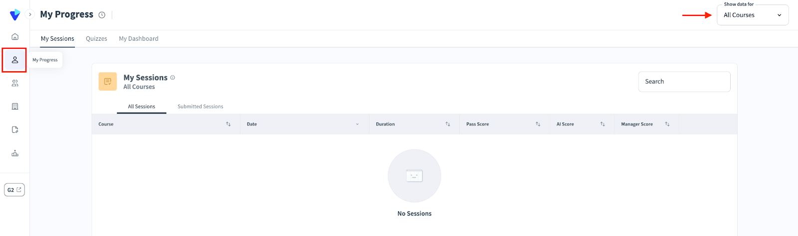 Only Managers may see their team’s sessions. Managers can see the sessions in Team Overview > All Sessions. In the Team Dashboard there is a high level overview of the team.