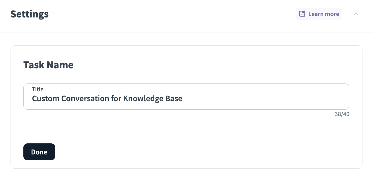 In the Settings section, locate the Task Name section. Enter a name to associate with your new simulation task, such as “Client Onboarding Simulation” or "Interview for Sales Role". Press Done to save the new task.
